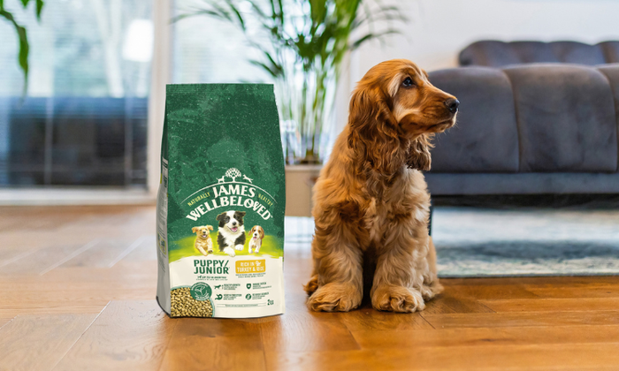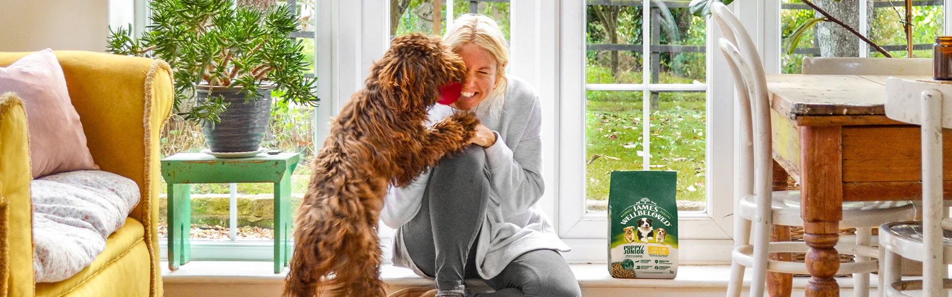 Młode psy powinny być karmione co najmniej dwa razy dziennie. W miarę jak szczeniak rośnie i dojrzewa, rozwija własną osobowość i może zacząć preferować określony smak oraz konsystencję karmy. Jeśli podajesz mu suchą karmę, możesz ją lekko zwilżyć ciepłą wodą – niektóre psy uznają taką karmę za smaczniejszą. Możesz też używać mokrej karmy James Wellbeloved™ jako uzupełnienie suchej karmy. Pamiętaj jednak, aby zmniejszyć ilość suchej karmy, gdy podajesz mokrą. Aby uzyskać poradę na temat odpowiedniej ilości przy karmieniu psa jednocześnie suchą i mokrą karmą, zapoznaj się z wytycznymi żywieniowymi lub skontaktuj się z naszym zespołem.